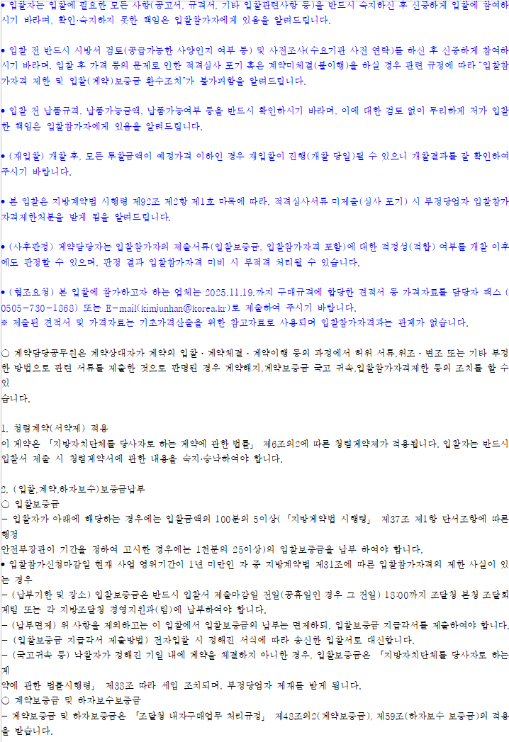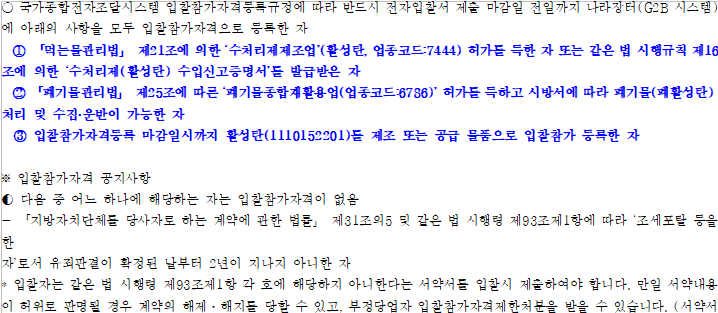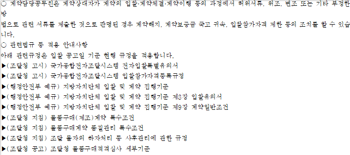 ○ 이 입찰은 「지방자치단체를 당사자로 하는 계약에 관한 법률」 제13조 제2항 제1호 및 같은 법 시행령 제42조 제1항 및