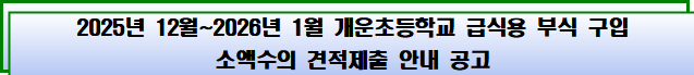 2025년 12월 ~ 2026년 1월 학교급식용 부식 구입 소액수의 견적제출 안내 공고