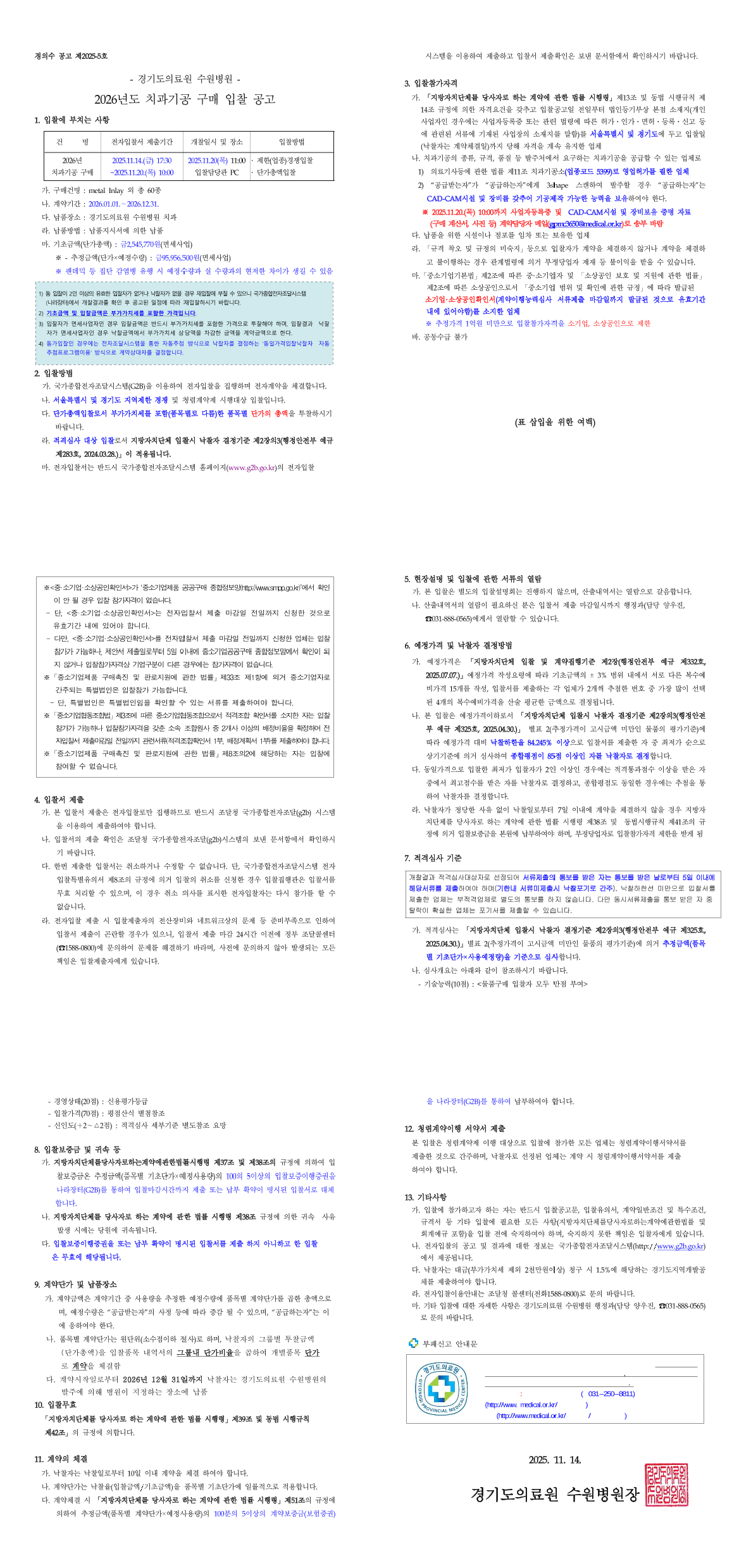 경기도의료원 수원병원 2026년도 치과기공 구매 입찰 공고 |