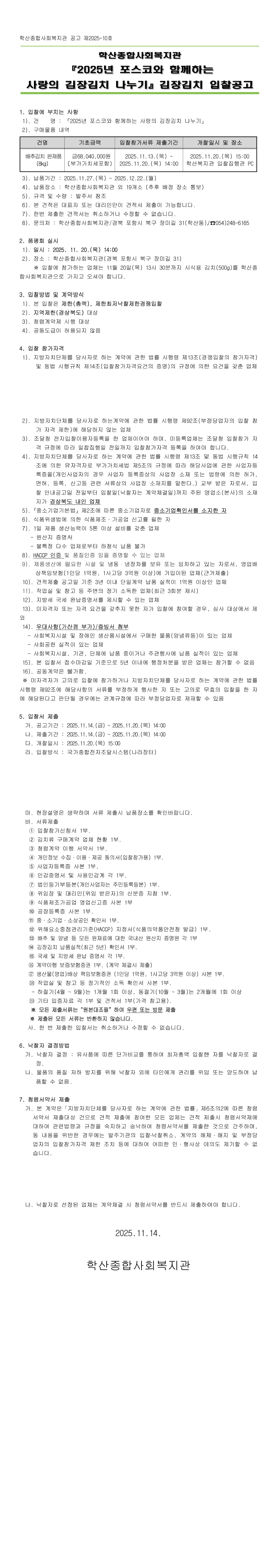 학산종합사회복지관 『2025년 포스코와 함께하는 사랑의 김장김치 나누기』김장김치 입찰 공고 |