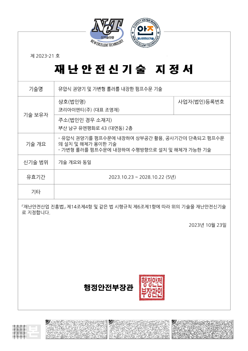 칠괴1배수문 수문일체형 빗물펌프 구매 |
