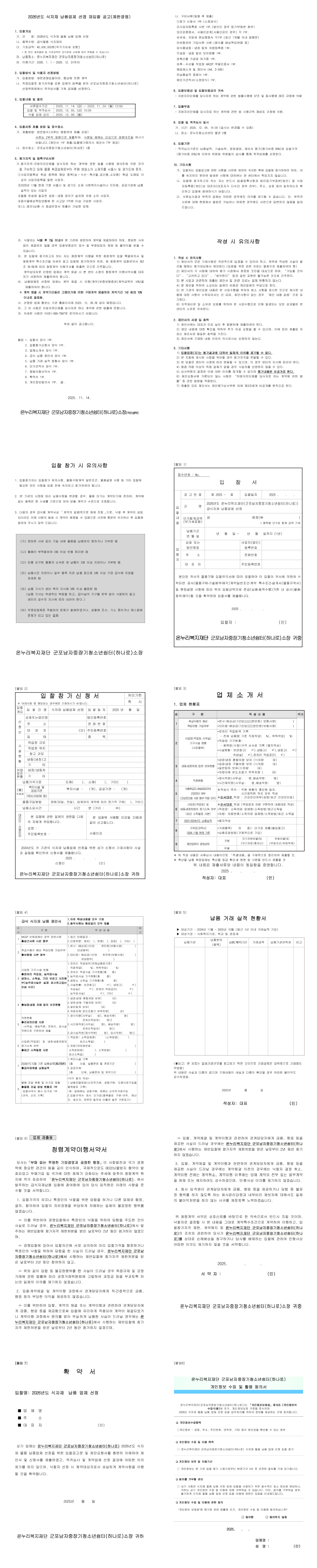2026년 온누리복지재단(군포남자중장기청소년쉼터(하나로))식자재 납품업체 선정 재입찰공고 |