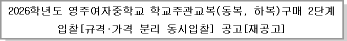 「지방자치단체를 당사자로 하는 계약에 관한 법률 시행령」(이하 “지방계약법 시행령”이라 한다.) 제18조(2단계 입찰)의 규정에 따라 2026학년도 영주여자중학교 학교주관교복(동복, 하복)구매 업체 선정을 위해 다음과 같이 공고[재공고]합니다.