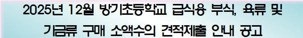 별도의 현품설명은 없으며, 공고기간 중 급식품 품목별내역서 등에 대하여 문의 사항이 있으면 방기초등학교 급식소(☏912-2380)로 문의하시기 바랍니다.