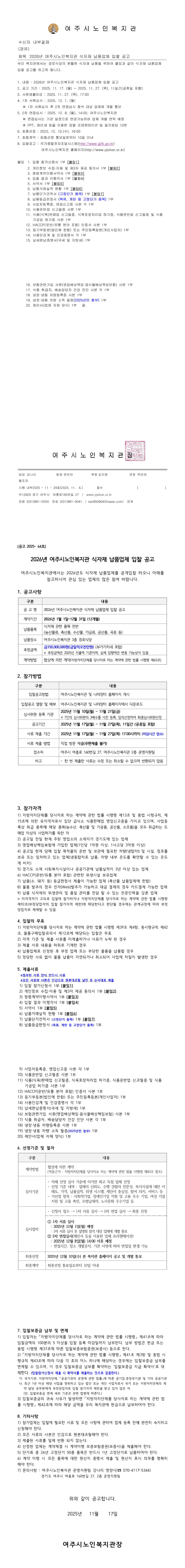 공고명 2026년 여주시노인복지관 식자재 납품업체 입찰 공고