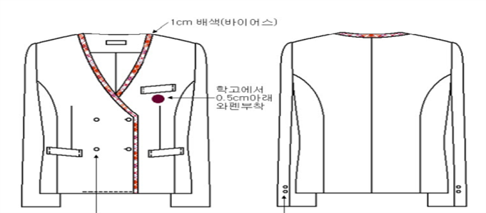 - 단추 라인 체크배색 (왼쪽 0.5cm, 오른쪽 2cm두께)