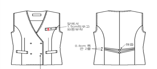 4. 겨드랑이, 어깨, 소매, 단 등은 속바느질을 튼튼히 하고 이중 박음으로 할 것