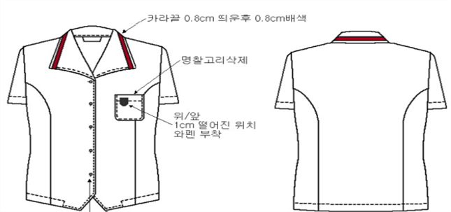 - 교표는 왼쪽 가슴 주머니 명찰 부분에 작게 (3cm)