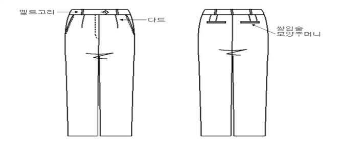 - 앞쪽에 다트 좌우 1개씩, 뒤쪽에 좌우 다트 2개씩