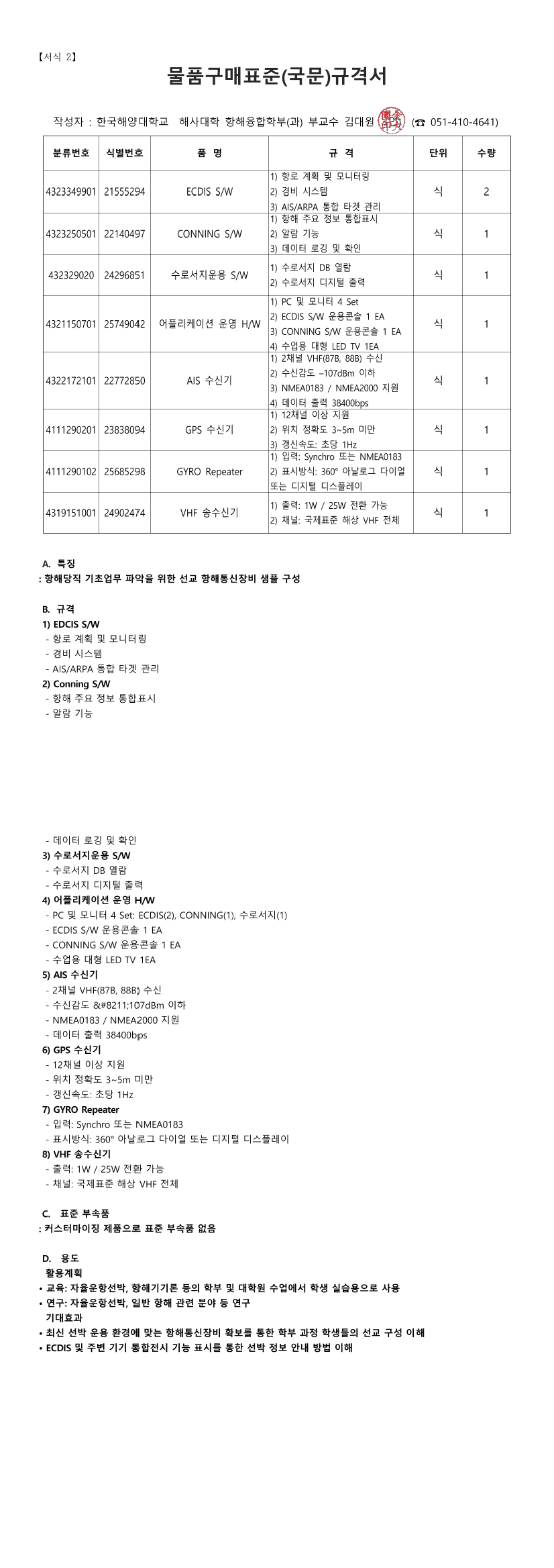 (수의시담) 실험실습기자재(교체-신규) 항해 항해기기실습장비 구입 |