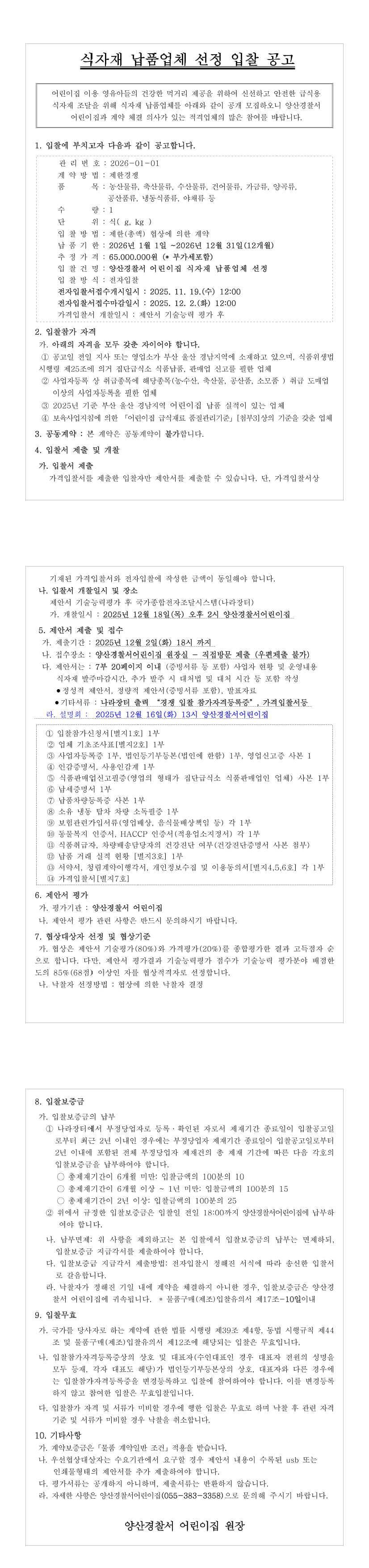 양산경찰서어린이집 식자재납품업체 선정공고 |