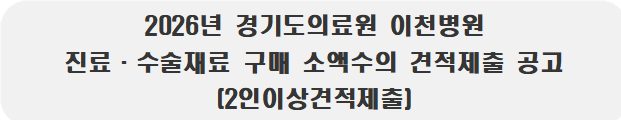 계약시작일로부터 2026년 12월 31일까지 낙찰자는 경기도의료원 이천병원의 발주에 의해 병원이 지정하는 장소에 납품하여야 합니다.