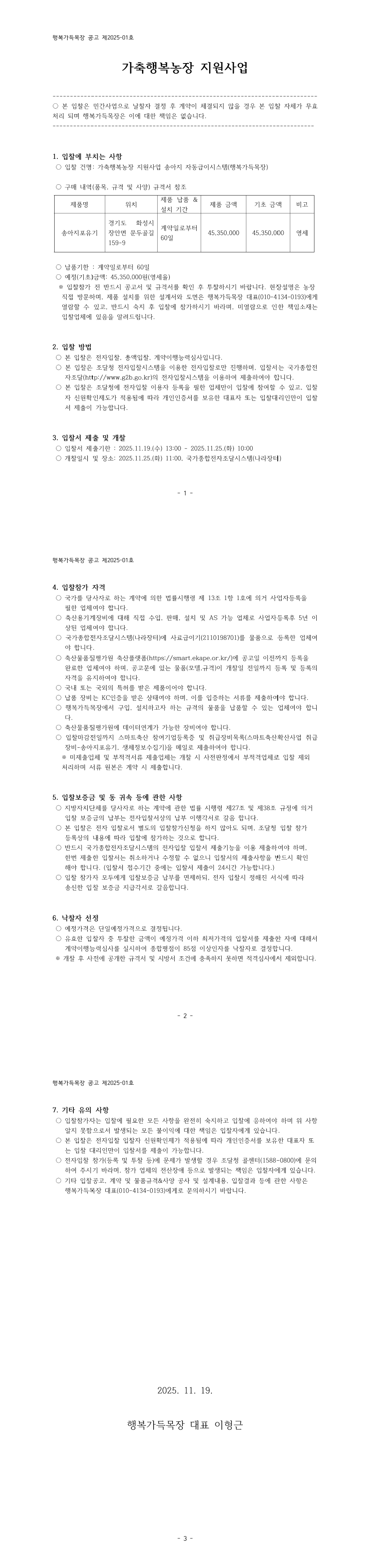 가축행복농장 지원사업 송아지 자동급이시스템(행복가득목장) |