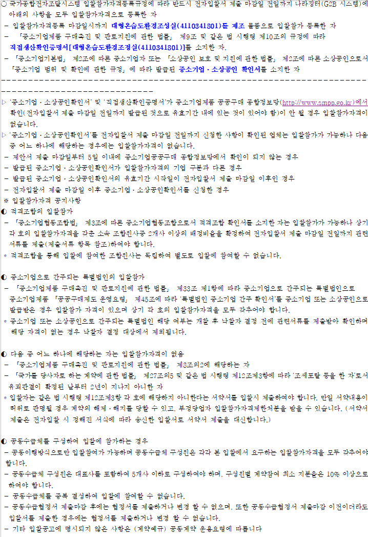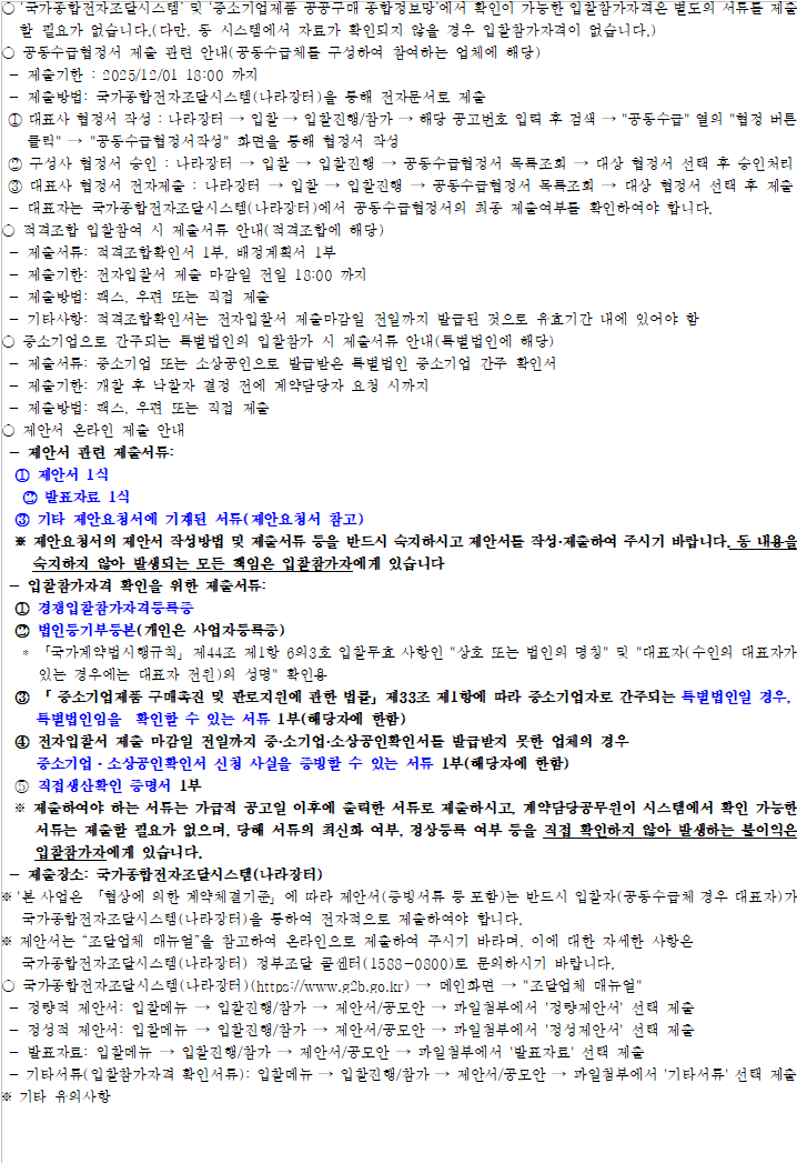 기타 세부사항은 전자입찰 공고서에 첨부된 과업내용서, 내역서 등을 반드시 확인하시기 바랍니다.