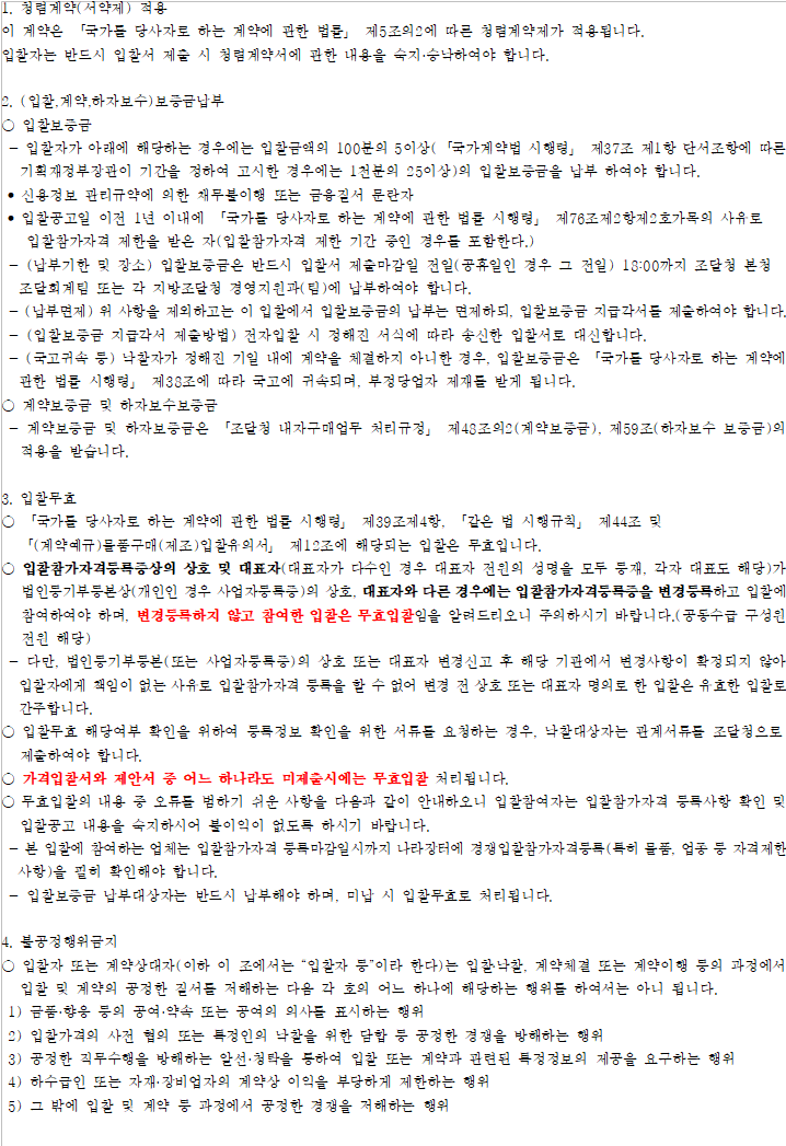 이 입찰 설명서는 입찰자와 낙찰자가 숙지하고 준수하여야 할 사항을 기재한 것으로써 모든 입찰희망자는 이를 열람하여야 합니