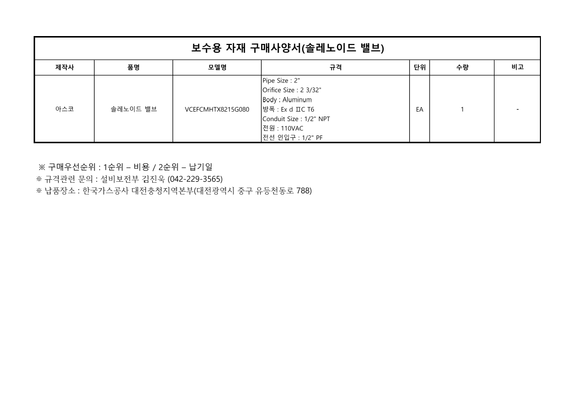 [긴급, 전자견적수취용]솔레노이드 밸브(2") |