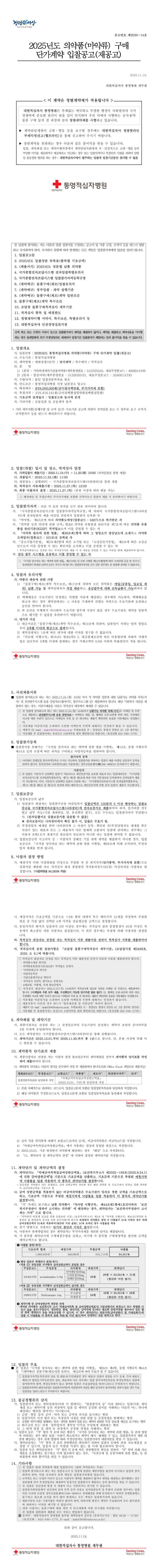 2025년도 의약품(마약류) 구매 단가계약 입찰(재공고) |
