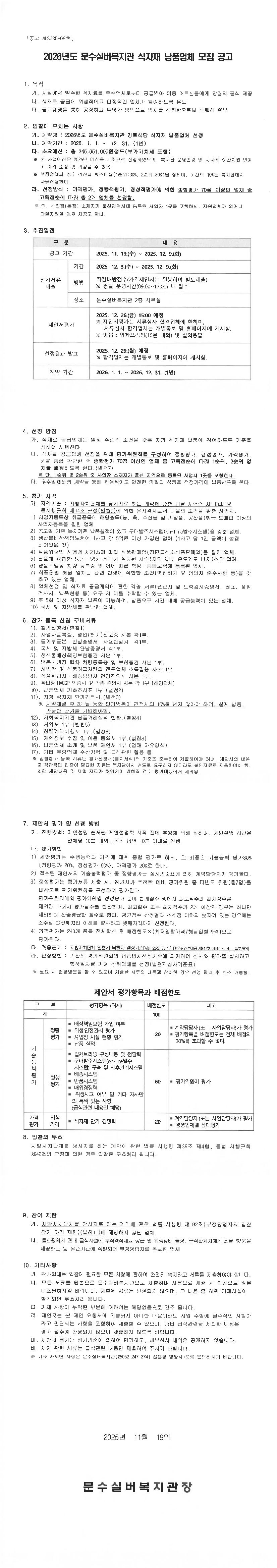 2026년도 문수실버복지관 경로식당 식자재 납품업체 모집 |