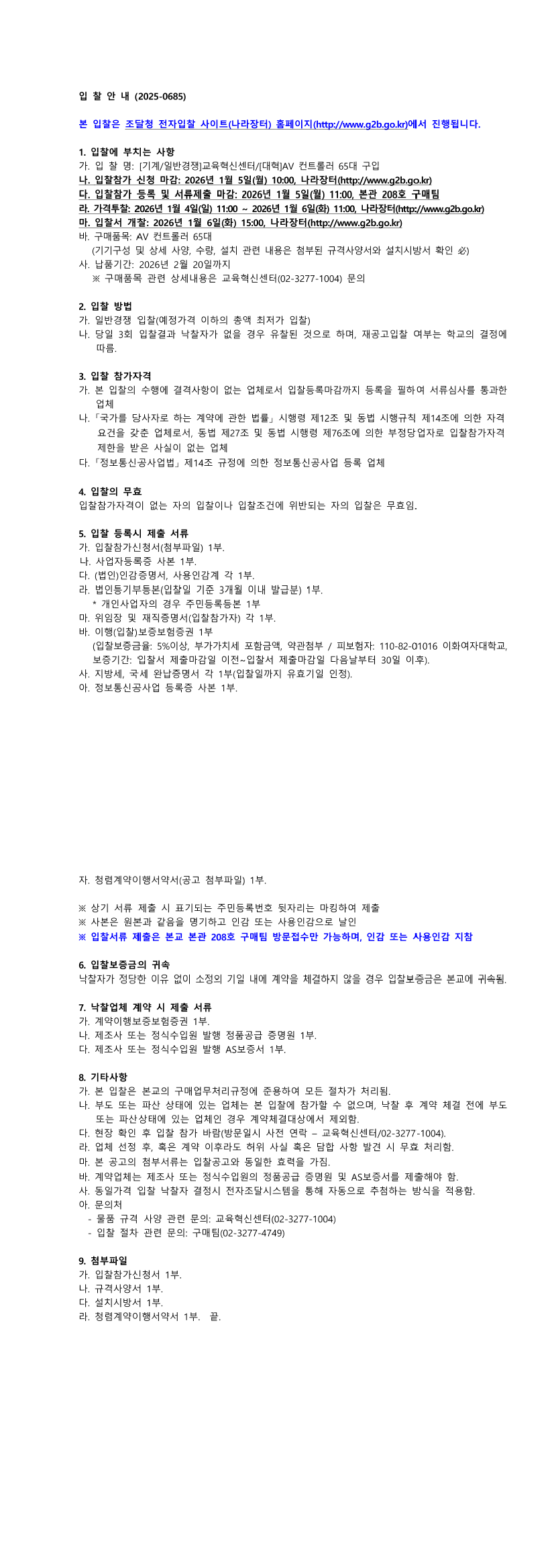 [기계/일반경쟁]교육혁신센터/[대혁]AV 컨트롤러 65대 구입 |