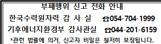 나. 이 입찰에 참가하고자 하는 자는 청렴계약 및 공정거래 이행을 위한 한국수력원자력(주)의 입찰유의서 및 계약일반조건의 관련 규정을 숙지하고 청렴계약 및 공정거래이행각서에 서명하여야 하며, 청렴계약 및 공정거래이행각서는 우리회사 전자상거래시스템(http://ebiz.khnp.co.kr)에 게재되어 있습니다.