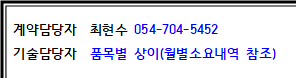 ○ 구매시방서 및 구매 규격 상세 사항은 기술사항 담당자에게 반드시 문의하시어, 향후 계약이행 시 규격착오에 대한 이의제기가 없도록 유의하시기 바랍니다.