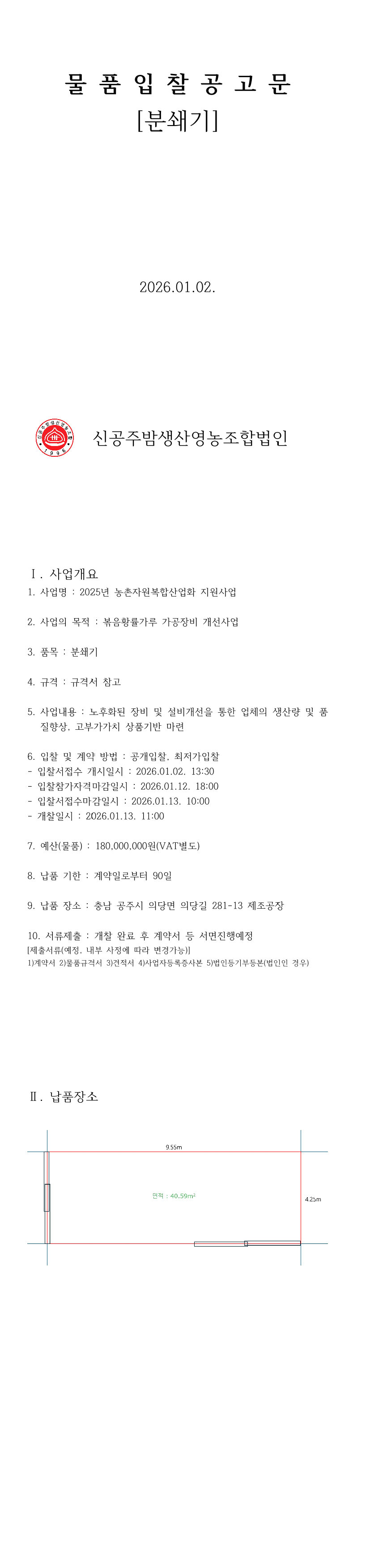 2025년 농촌자원복합산업화 지원사업[볶음황률가루 가공장비개선사업]-분쇄기 구매 |