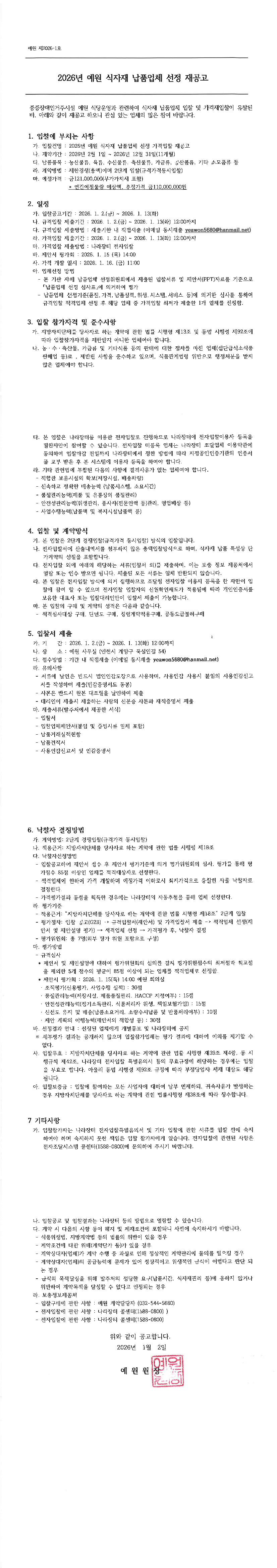 2026년 예원 식자재 납품업체 선정 재공고 |