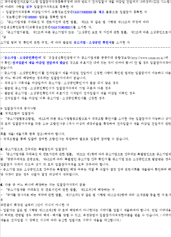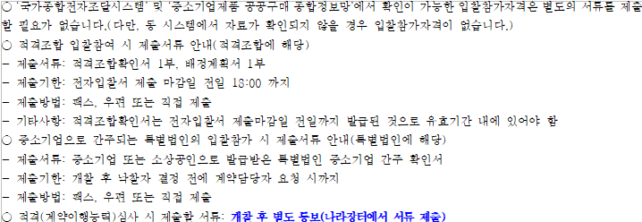 ○ (사후판정) 계약담당자는 「국가종합전자조달시스템 이용약관」 제11조 제1항에 따라 입찰참가자의 제출서류(입찰보증금, 입찰참가자격 포함)에 대한 적정성(적합) 여부를 개찰 이후에도 판정할 수 있습니다.