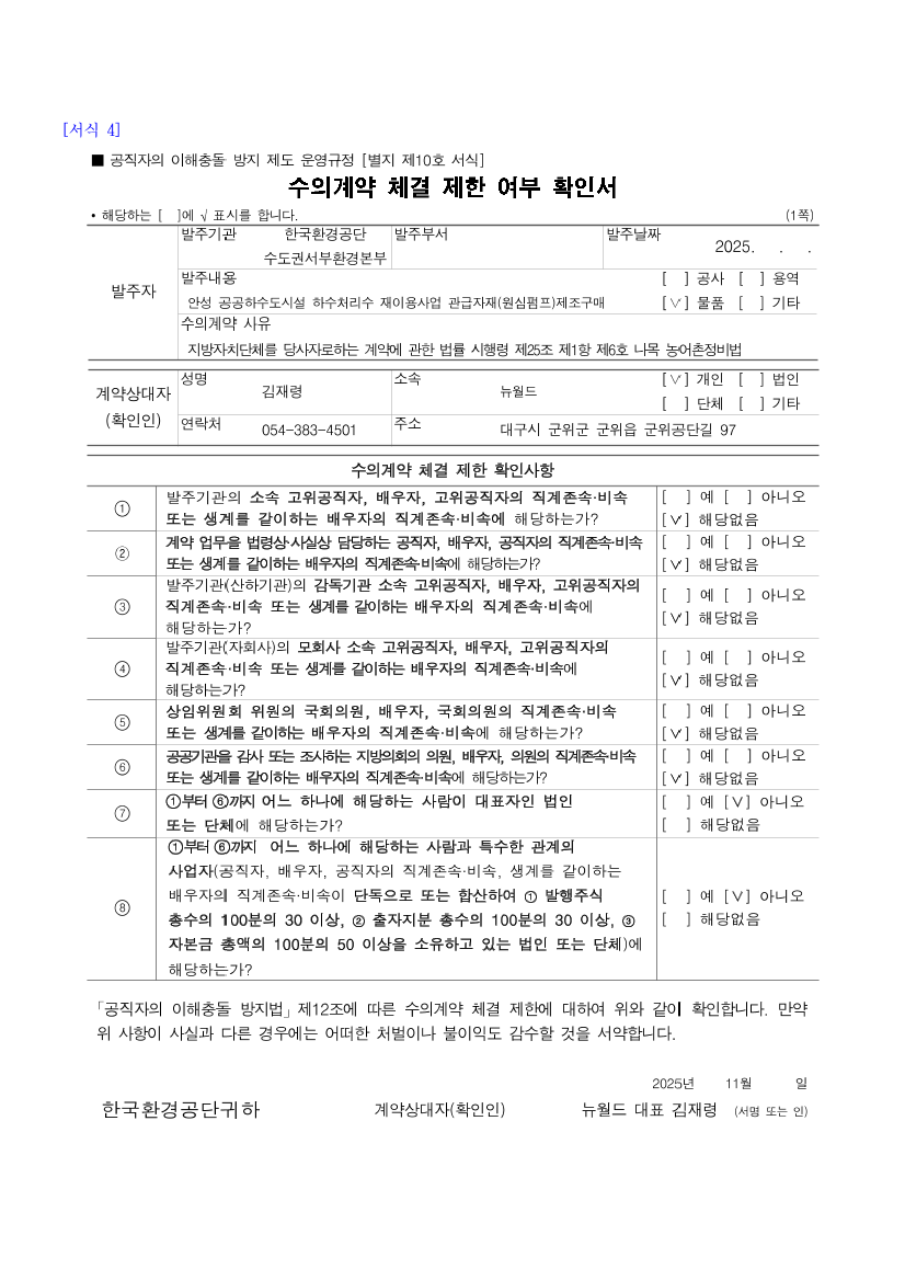 안성시 공공하수도시설 하수처리수 재이용사업 관급자재(원심펌프) |