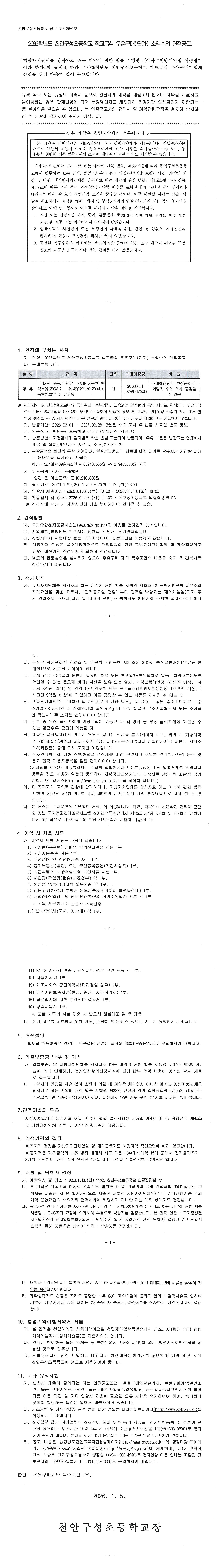 2026학년도 천안구성초등학교 학교급식 우유구매(단가) 소액수의 견적공고 |