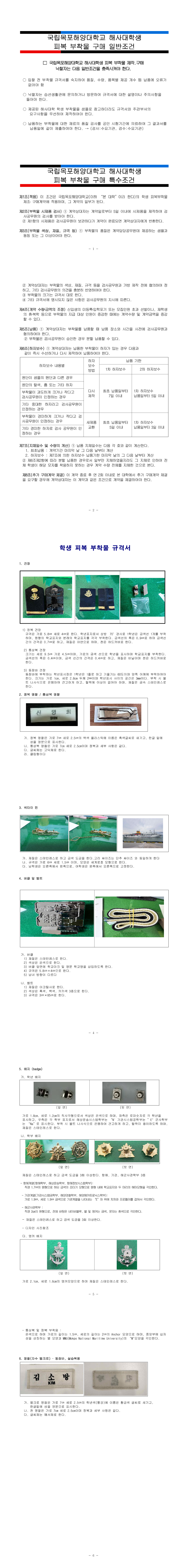 2026학년도 해사대학 신입생 피복 부착물 제작·구매 |