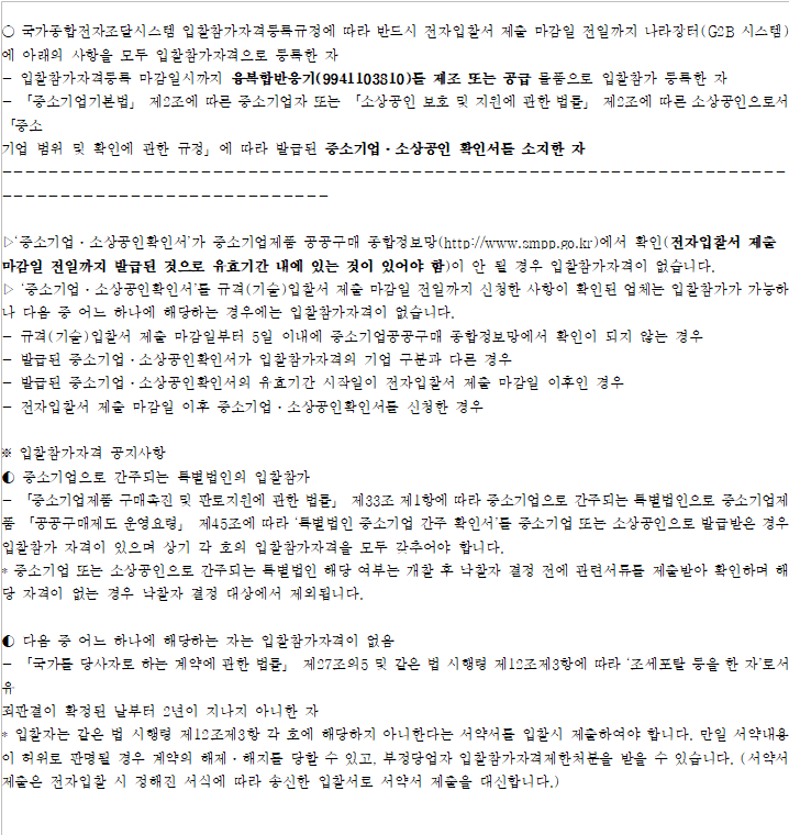 물품분류 10자리로 입찰참가 제한함
