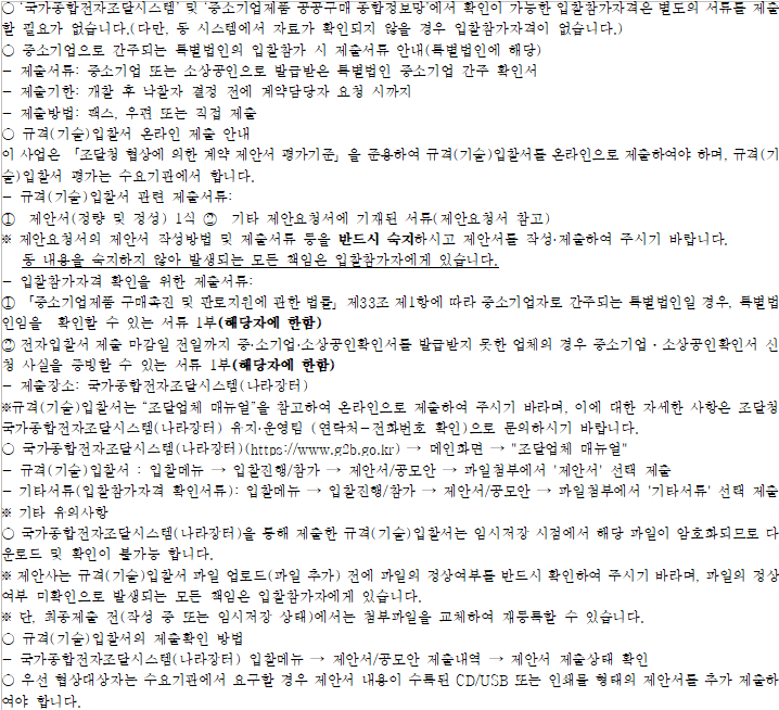 기타 세부사항은 전자입찰 공고서에 첨부된 과업내용서, 내역서 등을 반드시 확인하시기 바랍니다.