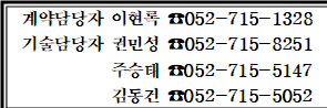 ○ 새울1발 기기엔지니어링부 주승태 (052-715-5147) ※ 그 외 품목