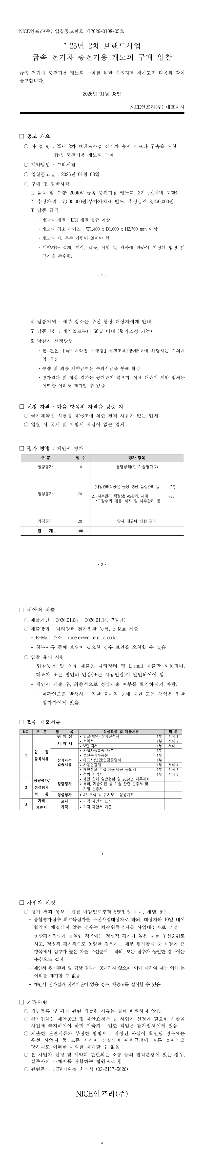 25년 2차 브랜드사업 급속 전기차 충전기용 캐노피 구매 입찰 |