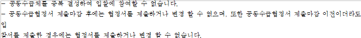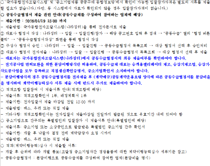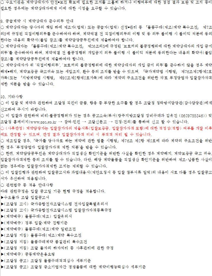 * 각 항에 해당하는 낙찰자는, 독립된 사업체로 분리·파악되는 별개의 사업부서 확인을 위하여, 계약체결 시 부서명, 부서인원, 업무내용이 표기된 회사조직도를 제출해야 합니다.