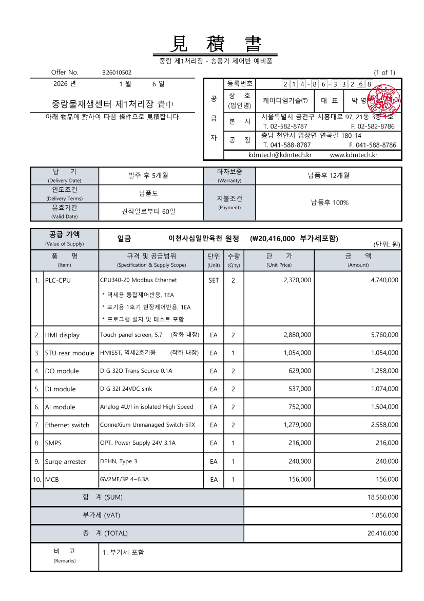 송풍기 제어용PLC 예비품 구매 |