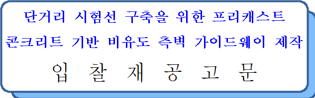 1. 입 찰 명 : 단거리 시험선 구축을 위한 프리캐스트 콘크리트 기반 비유도 측벽