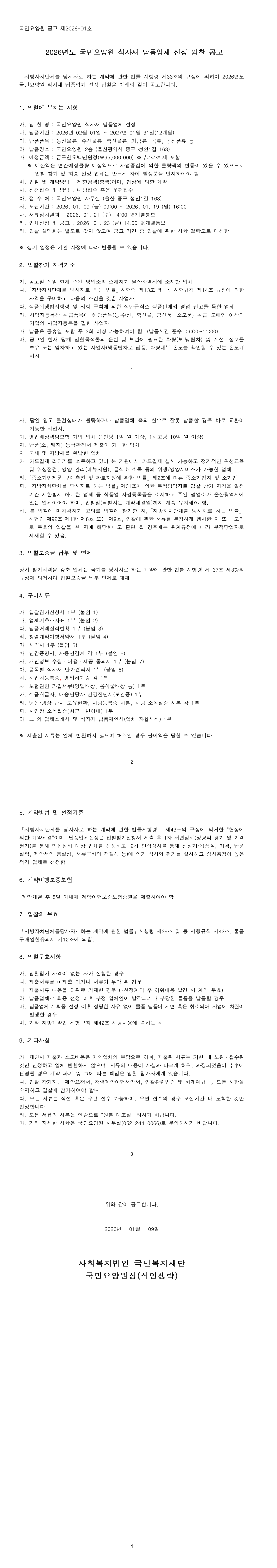2026년도 국민요양원 식자재 납품업체 선정 입찰 공고 |