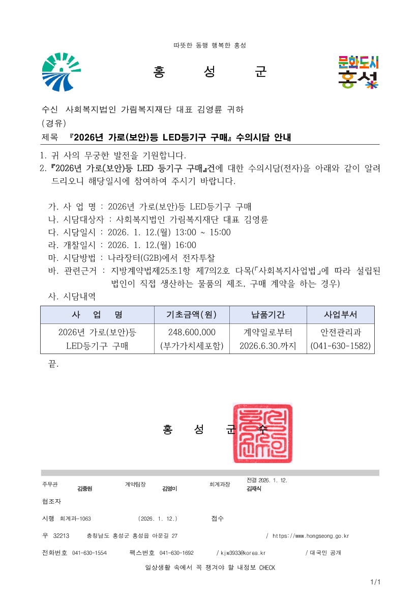 2026년 가로(보안)등 LED등기구 구매 수의시담 |