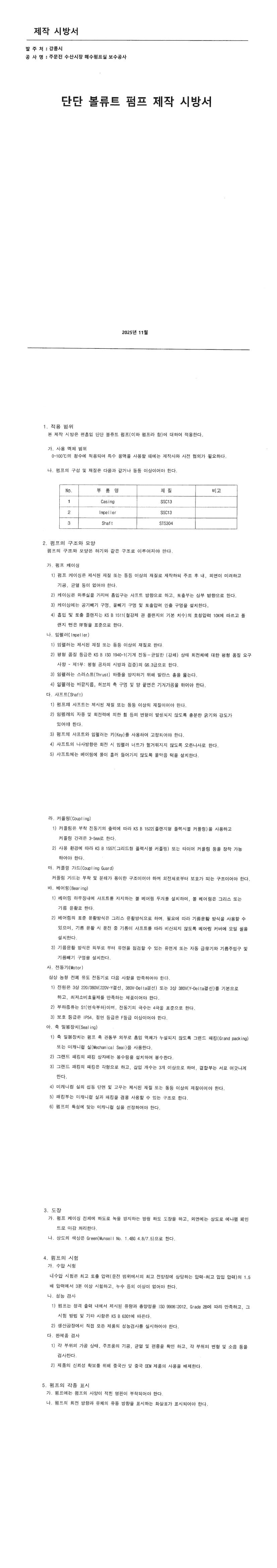 주문진수산시장 해수펌프시설 보수공사(기계) 관급(편흡입벌류트펌프) |