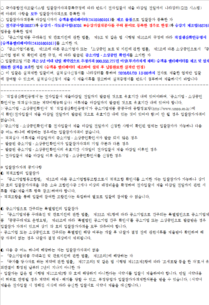 기타 세부사항은 전자입찰 공고서에 첨부된 과업내용서, 내역서 등을 반드시 확인하시기 바랍니다.