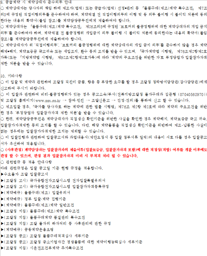 기타 관련 법령, 계약규정 또는 계약조건 위반 등으로 인해 공정한 조달질서를 훼손한 행위