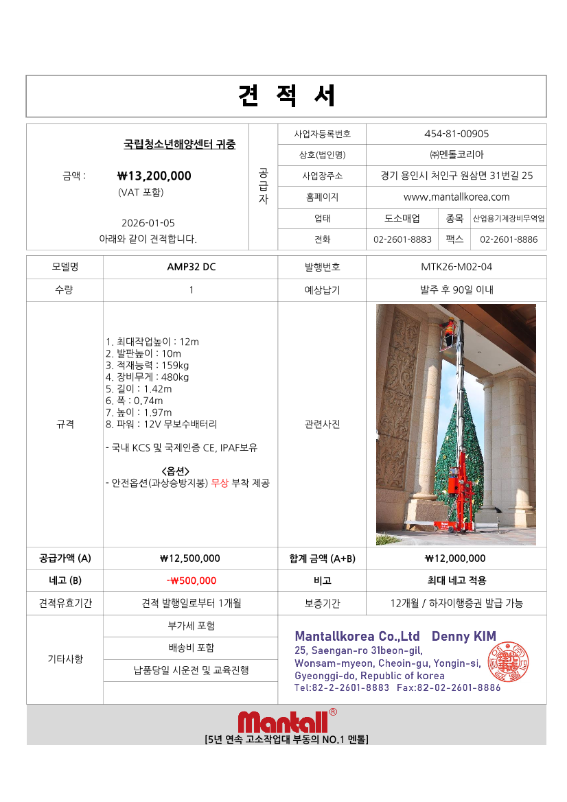 2026년 국립청소년해양센터 이동식 리프트 구매 |