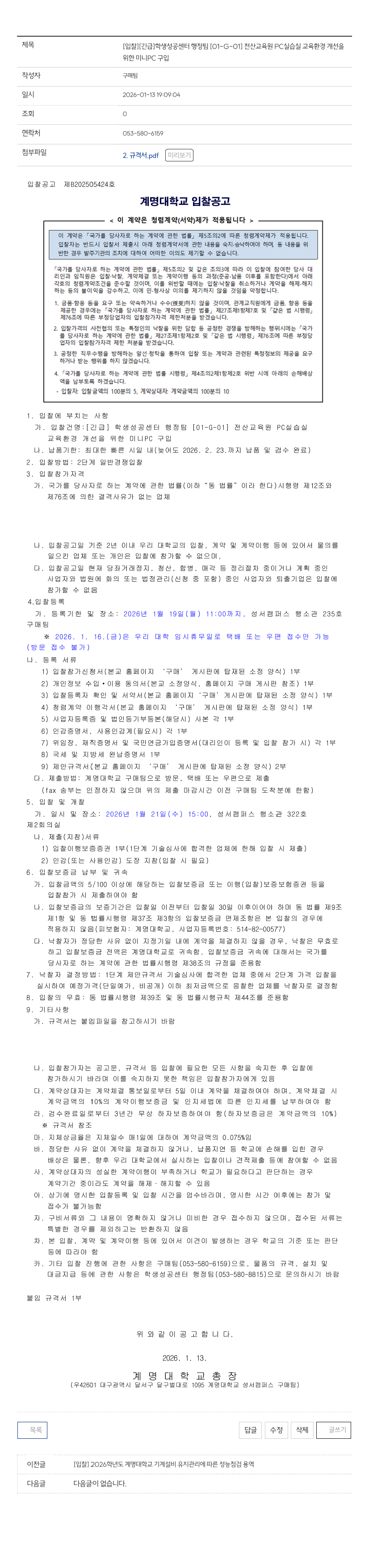 학생성공센터 행정팀 [01-G-01] 전산교육원 PC실습실 교육환경 개선을 위한 미니PC 구입 |