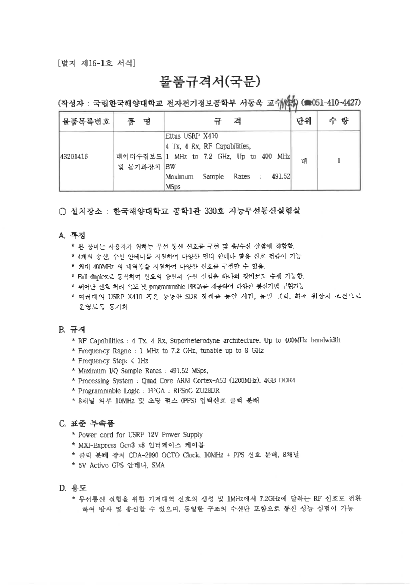 데이터수집보드(USRP) 및 동기화 장치 구매 |