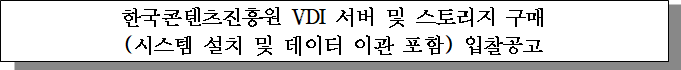 ㅇ 입찰건명 : 한국콘텐츠진흥원 VDI 서버 및 스토리지 구매(시스템 설치 및 데이터 이관 포함)