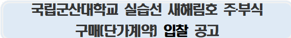 가. 입찰건명 : 국립군산대학교 실습선 새해림호 주부식 구매(단가계약)