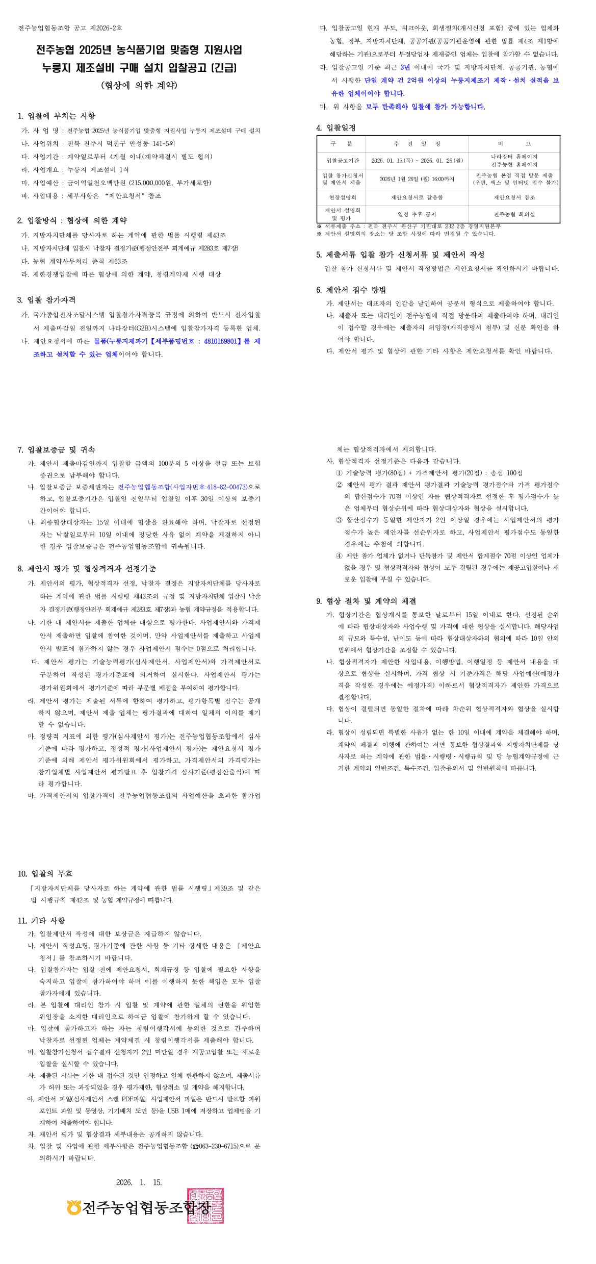 전주농협 2025년 농식품기업 맞춤형 지원사업 누룽지 제조설비 구매 설치 |