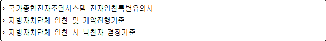 ※ 입찰공고문에 정한 각종 규정은 개정될 수 있으며, 개정될 경우 개정 규정 부칙의 시행일(또는 적용례)에 따라 개정 규정의 적용 여부가 결정될 수 있습니다.